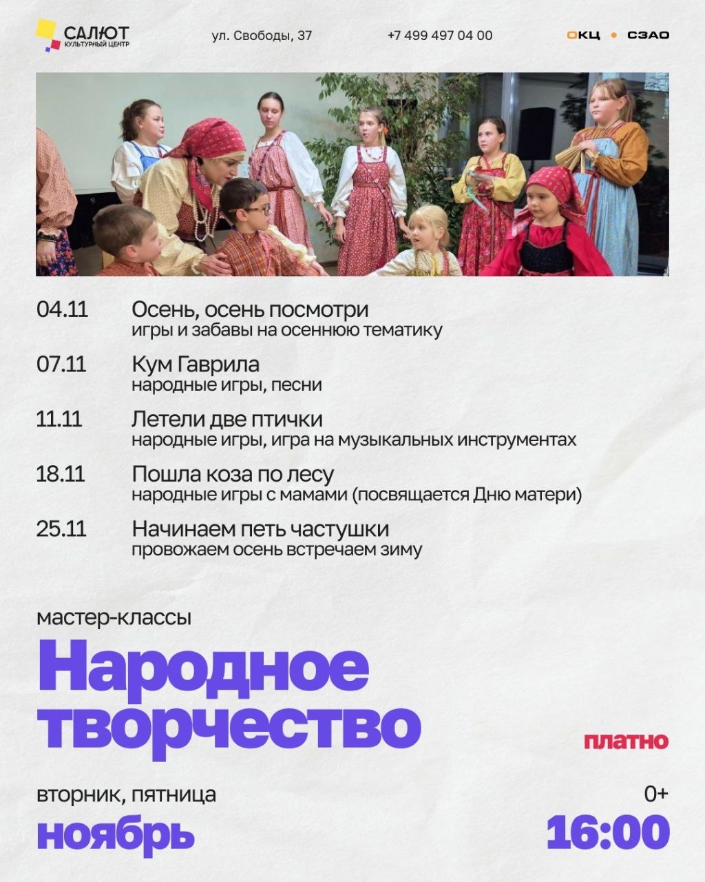 Друзья, приглашаем всех — от 4 лет и старше — на серию ярких и душевных мастер-классов, посвящённых русским народным традициям.